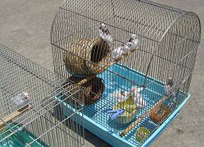 小鳥たちのカゴや付属品全てを丁寧に洗い