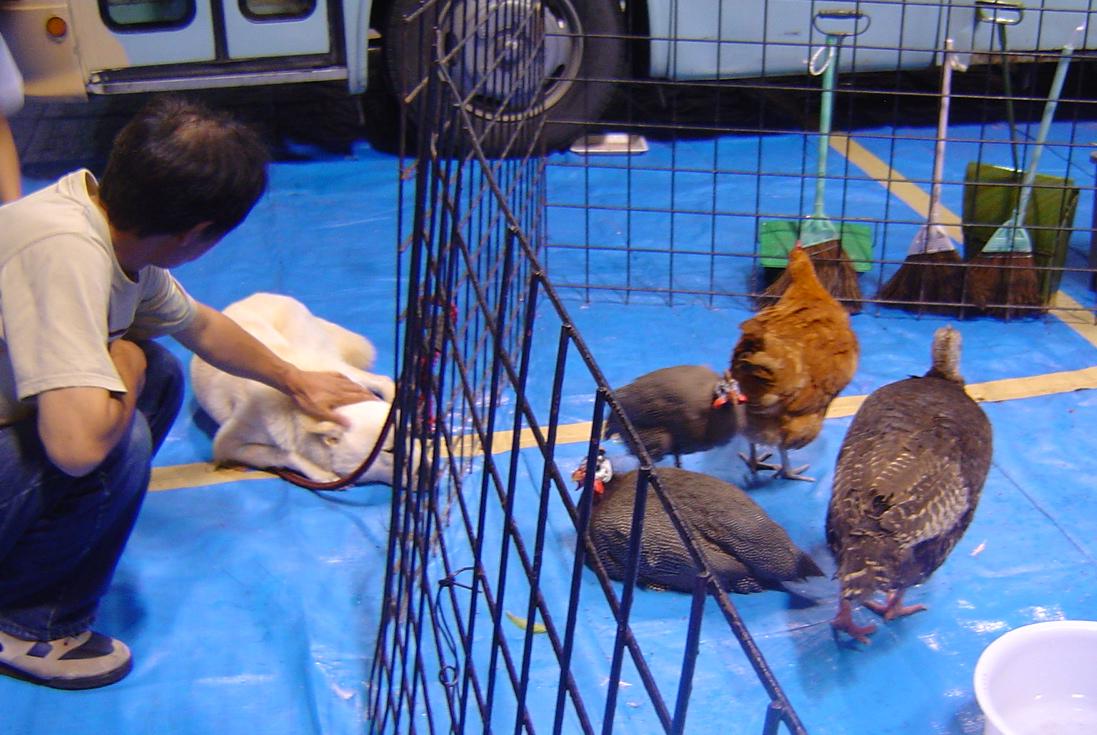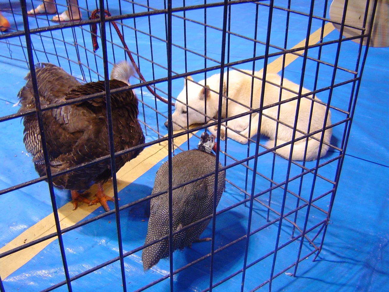 たそがれる鳥たちと太郎(犬)とおいちゃん。