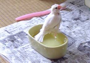 「文鳥にアウターバスで水浴びすることを